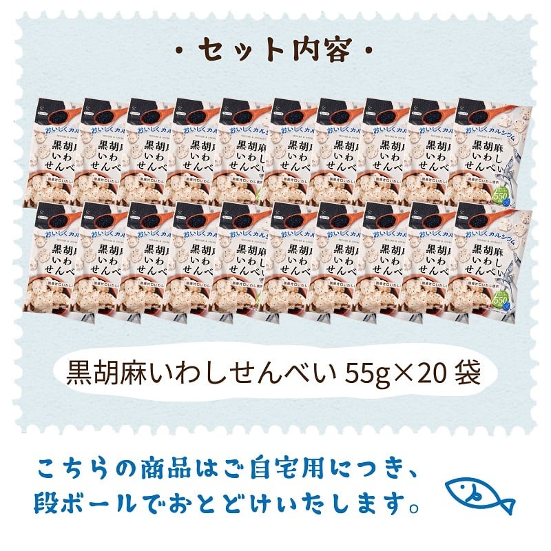 岡田屋製菓 黒胡麻いわしせんべい 55g 【20袋セット】